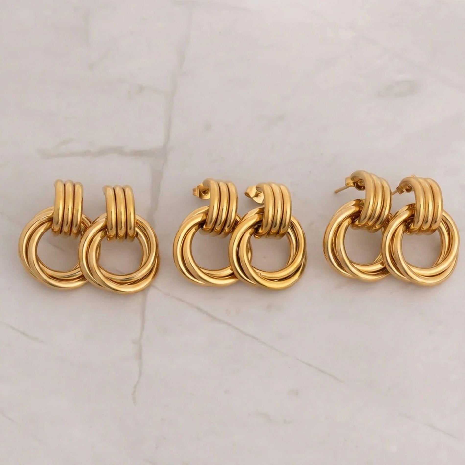 18K Gold PVD 316L Surgical Stainless Steel Double Interlocking Hoop Earrings for Women – Non-Tarnish, Hypoallergenic