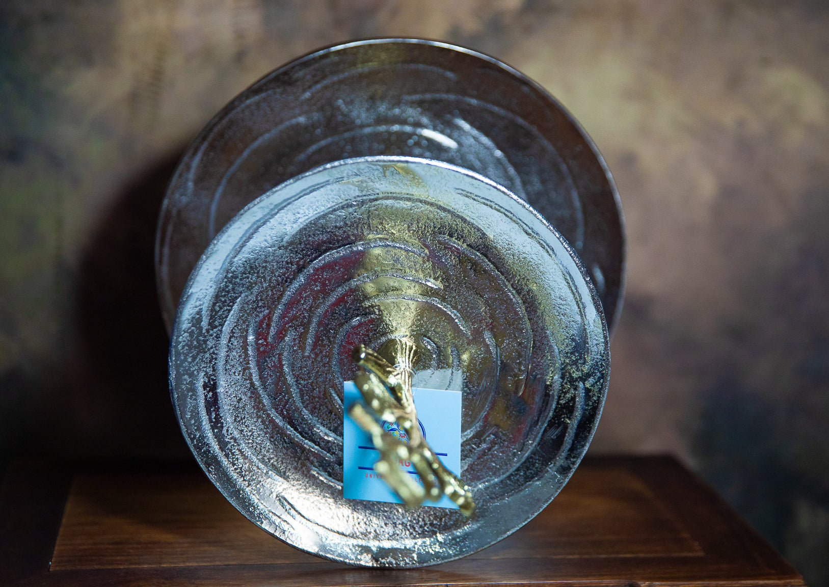 - Two-tiered clear glass plates with ripple detailing