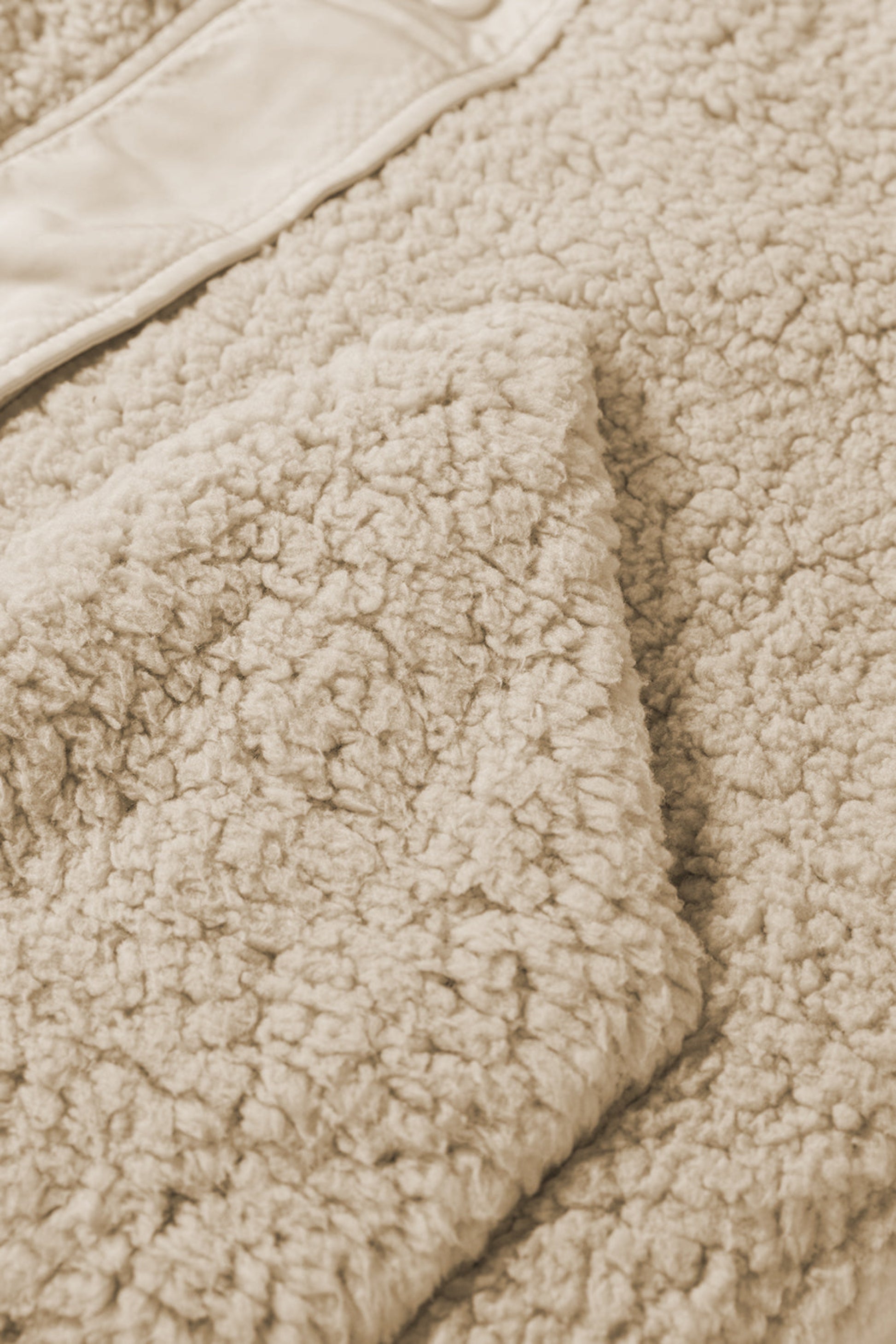 - Soft faux fur fabric adds cozy warmth and luxe texture to your look.
