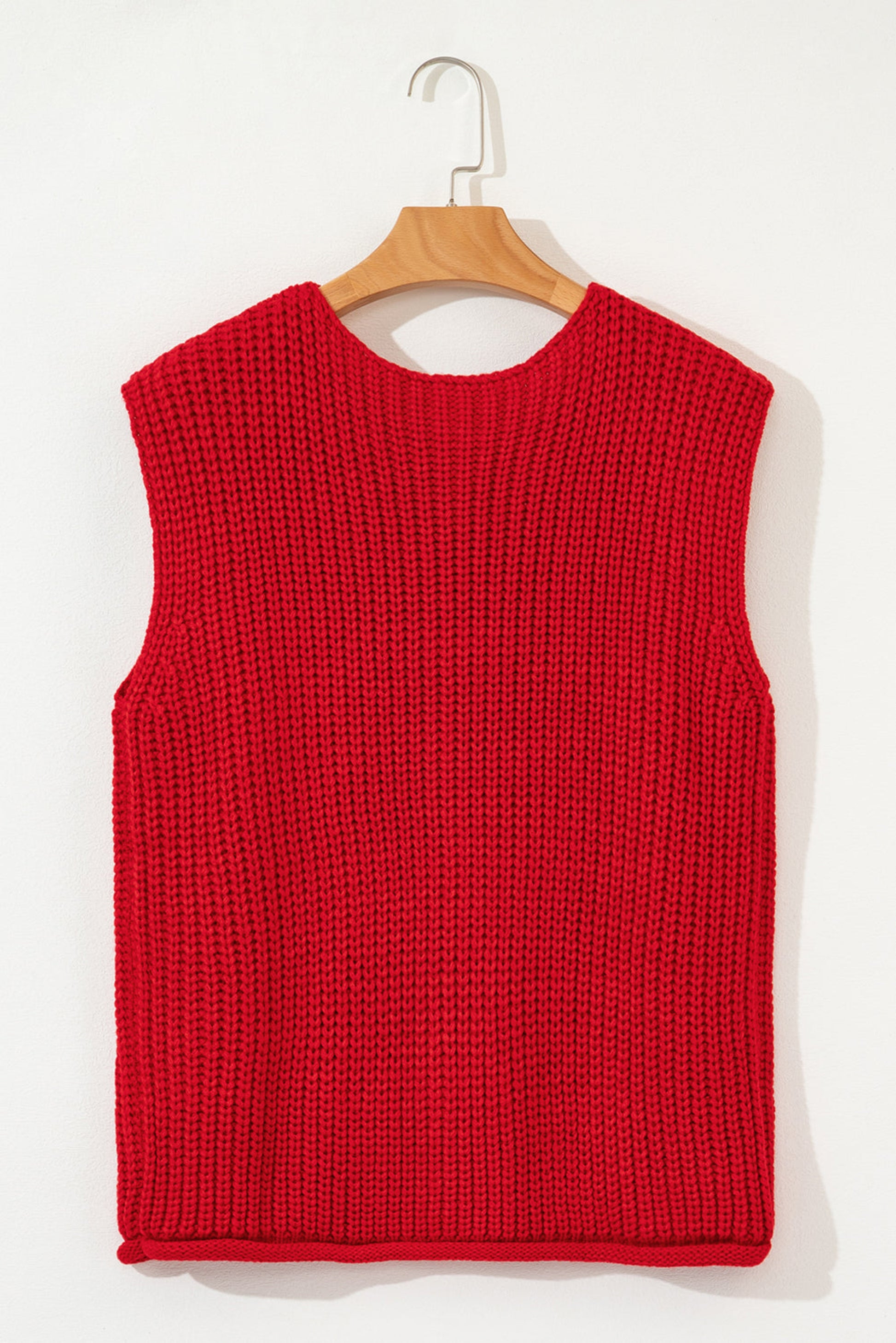 Firey Red Chunky Knit Buttoned Sweater Vest for Women – Cozy Fall Layer with Side Pockets