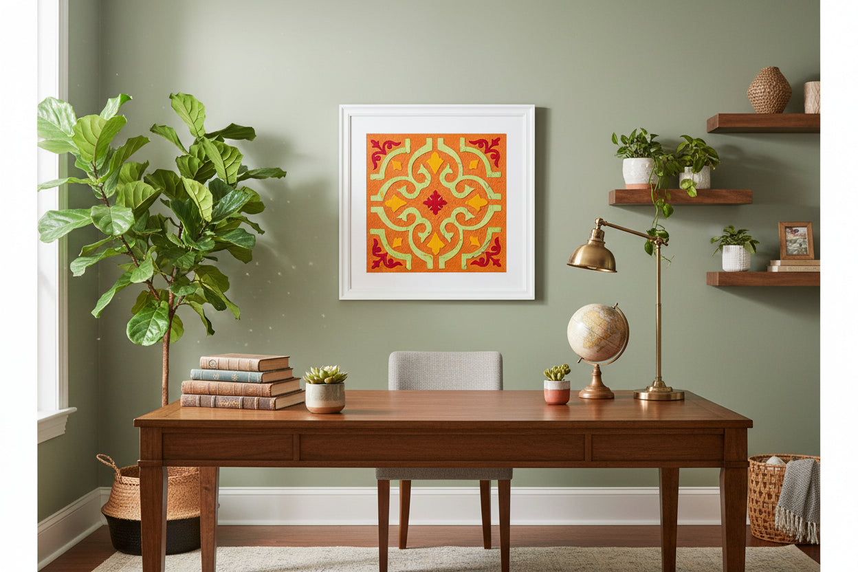 “Inspired by Mediterranean tiles and Mughal motifs, this canvas brings tradition into the now—vibrant, handcrafted, and alive.”