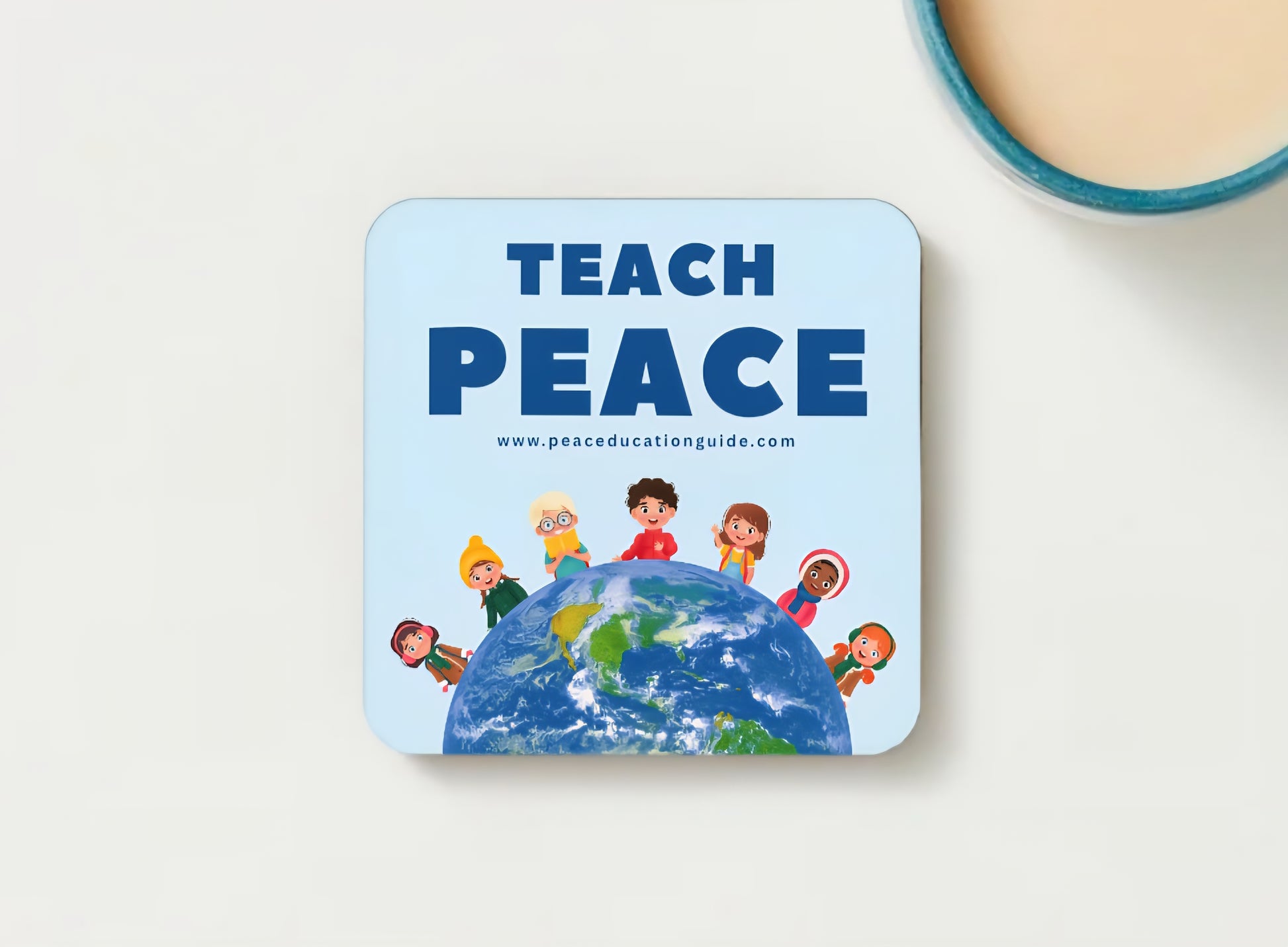 Join our movement with TEACH PEACE Coasters. Promote an empathy-focused learning environment with our daily reminder. Made with hardboard and cork backing for table protection. 3.8x3.8 inches. Passionately inspire a peaceful atmosphere!