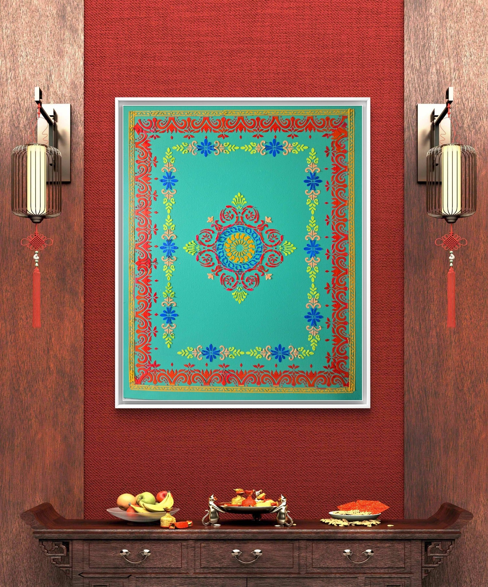 This statement piece is perfect for living rooms, meditation areas, or cultural displays—infusing any space with heritage, color, and spiritual depth. As part of Shah’s Arabesque Reflections series, it bridges old-world craftsmanship with modern artistic vision.